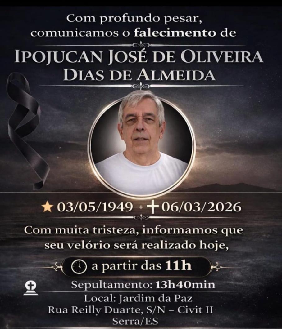 O velório acontece no cemitério Jardim da Paz (localizado no município de Serra), onde às 13h45 será realizado o sepultamento.