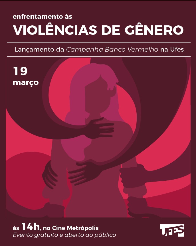 O evento também marcará a adesão da Ufes à mobilização nacional Banco Vermelho pelo Feminicídio Zero, coordenada pelo Instituto Banco Vermelho (IBV) em parceria com a Associação Nacional dos Dirigentes das Instituições Federais de Ensino Superior (Andifes). Como símbolo de adesão à campanha, será inaugurado um banco vermelho do campus de Goiabeiras, no qual haverá um cartaz de conscientização (abaixo) sobre as diferentes formas de violência contra a mulher e formas de denunciar. Posteriormente, todos os centros de ensino da Ufes terão um banco vermelho, como forma de disseminar as ações de conscientização.