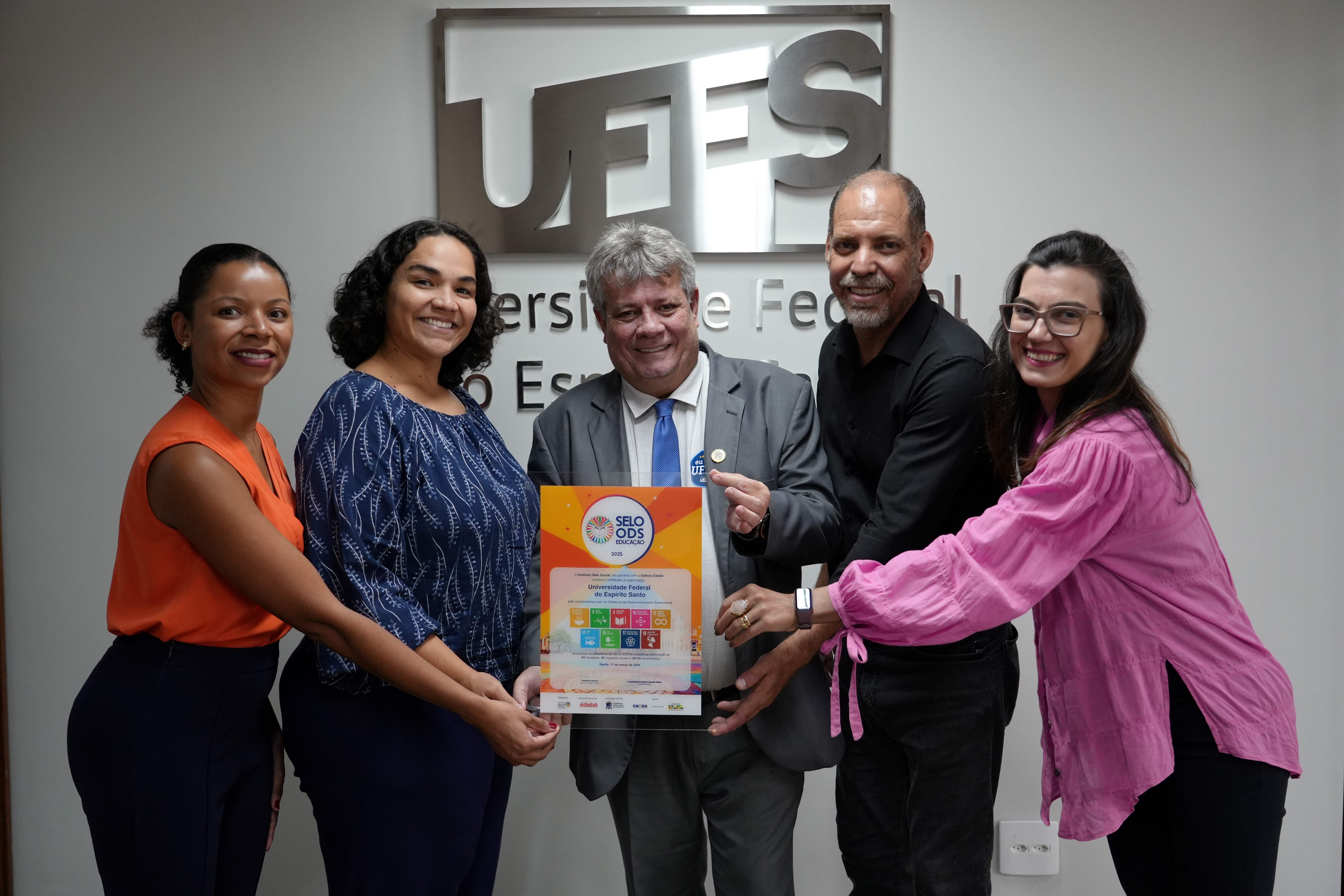 O reitor da Ufes, Eustáquio de Castro, recebeu nesta sexta-feira, 20, o certificado Selo ODS Educação 2025, concedido à Universidade pelo Instituto Selo Social, que reconhece iniciativas educacionais alinhadas aos Objetivos de Desenvolvimento Sustentável (ODS) da Organização das Nações Unidas (ONU). Ao todo, 24 ações, projetos e programas desenvolvidos pela Ufes ao longo de 2025 foram reconhecidos pelo Instituto.