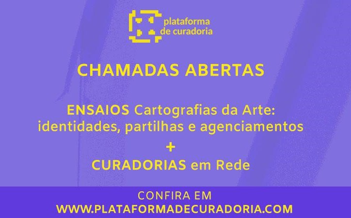 A chamada Cartografias da Arte: identidades, partilhas e agenciamentos visa reunir pesquisadores de diversas áreas que tenham interesse em publicar ensaios textuais na Plataforma de Curadoria. As obras devem se encaixar em um dos seguintes eixos temáticos: práticas expositivas, curatoriais e memória de exposições; poéticas transversais na arte contemporânea: modos de fazer e compartilhar; e estéticas e agenciamentos artístico-culturais em ou a partir de perspectivas étnico-raciais. As submissões podem ser feitas em português e espanhol, exclusivamente pelo site da Plataforma.