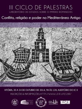 Estão abertas até o dia 18 de outubro as inscrições para o III Ciclo de Palestras do Laboratório de Estudos sobre o Império Romano, seção Espírito Santo (Leir/ES), que será realizado entre os dias 20 e 24 de outubro no campus de Goiabeiras. O Ciclo deste ano terá como tema “Conflito, religião e poder no Mediterrâneo Antigo”.