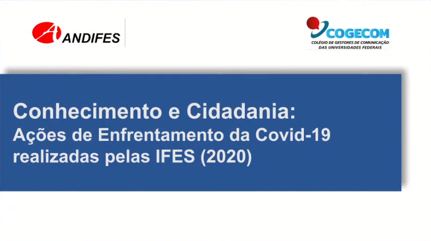 Mais de 85 milhões de pessoas beneficiadas em várias frentes de apoio e enfrentamento à pandemia e mais de 2 mil pesquisas desenvolvidas exclusivamente sobre covid. Esses são alguns dos resultados divulgados pela pesquisa Conhecimento e Cidadania, realizada pelo Colégio de Gestores de Comunicação (Cogecom) da Associação Nacional dos Dirigentes das Instituições Federais de Ensino Superior (Andifes) e apresentada nesta segunda-feira, 31 por meio do canal da Andifes no YouTube.