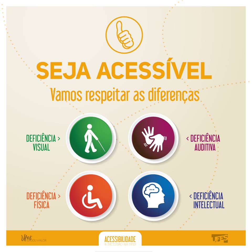 Em setembro deste ano, uma campanha institucional de inclusão da pessoa com deficiência no ambiente acadêmico foi desenvolvida no portal da Ufes e nas redes sociais da Universidade. A campanha teve a proposta de criar uma atmosfera de acolhimento com o envolvimento de toda a comunidade universitária.