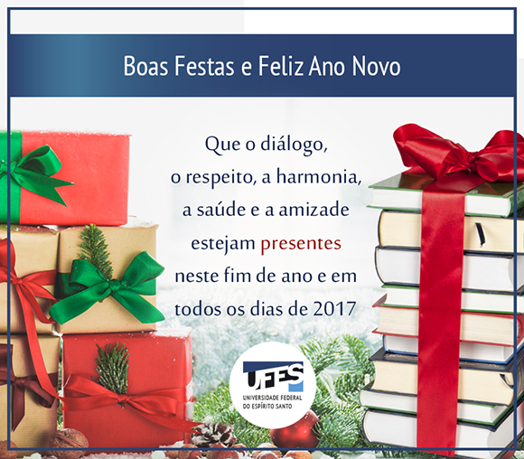 A Administração Central da Ufes deseja a você que o diálogo, o respeito, a harmonia, a saúde e a amizade estejam presentes neste fim de ano e em todos os dias de 2017.