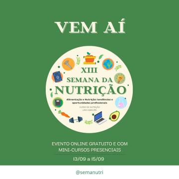 CCS sedia a XIII Semana da Nutrição, de 13 a 15 de setembro. Inscrições abertas