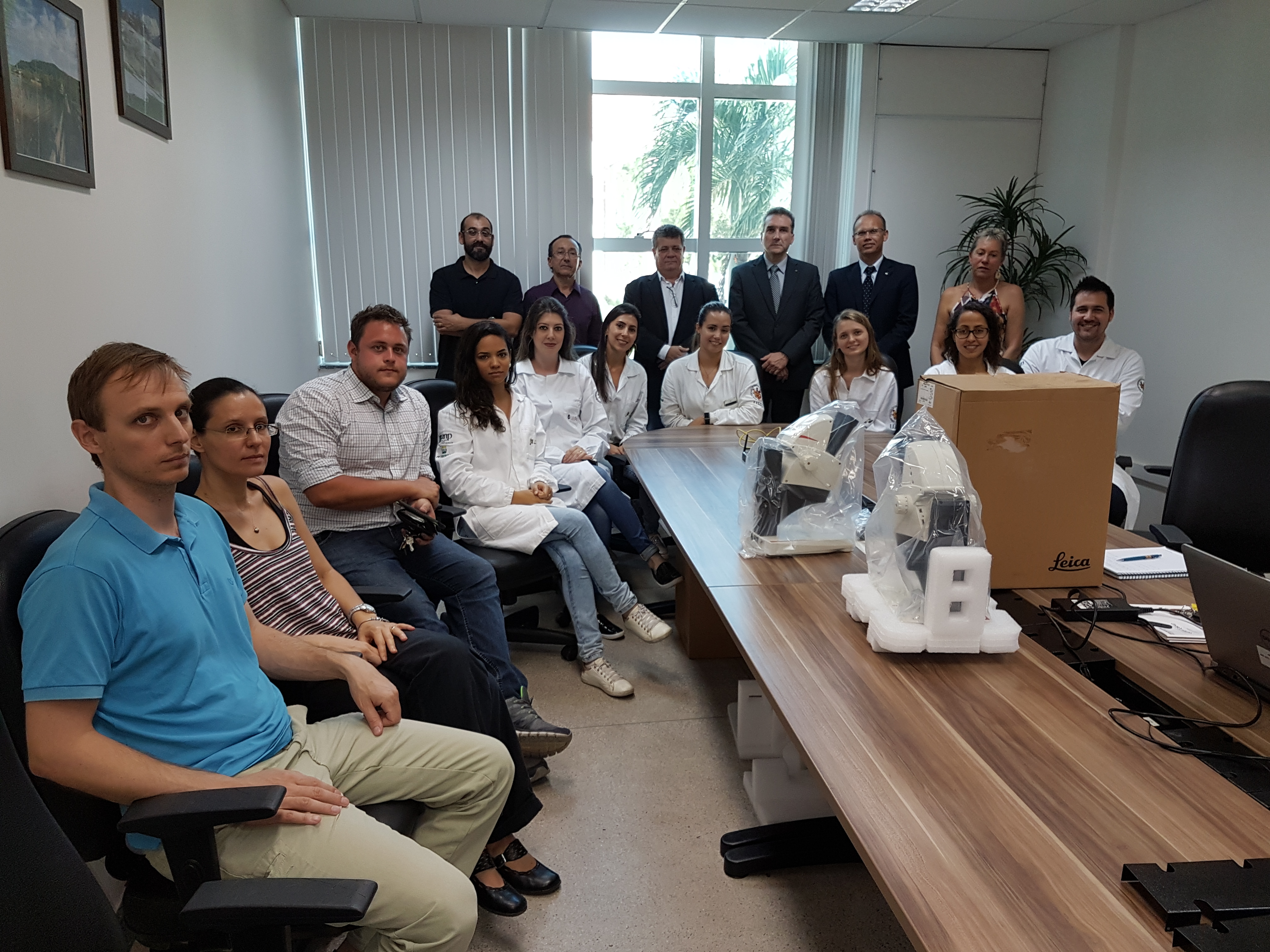 O Centro de Ciências Exatas da Ufes (CCE) recebeu dez microscópios e quatro contêineres doados pela Receita Federal, cujo valor estimado é de R$ 149 mil. A doação foi feita pessoalmente pelo inspetor-chefe da Alfândega do Porto de Vitória, Fabrício Betto, e pelo inspetor-chefe adjunto da Alfândega do Porto de Vitória, Jaques Mauro de Moraes, na tarde desta terça-feira, 19, na sala de reuniões do Laboratório de Pesquisa e Desenvolvimento de Metodologias para Caracterização de Óleos Pesados (LabPetro). Eles foram recebidos pelo diretor do CCE, Eustáquio de Castro, e por professores e pesquisadores da Ufes.