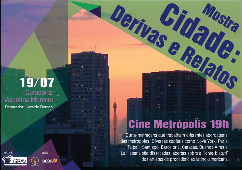 No dia 19 de Julho, às 19 horas, o Cine Metrópolis sedia a mostra "Cidade: Derivas e Relatos" com trabalhos experimentais latinos inéditos no estado, reúne obras que trabalham diferentes abordagens das metrópoles. Após a exibição, haverá um debate com a curadora Valentina Montero e o professor e arquiteto Heraldo Borges.