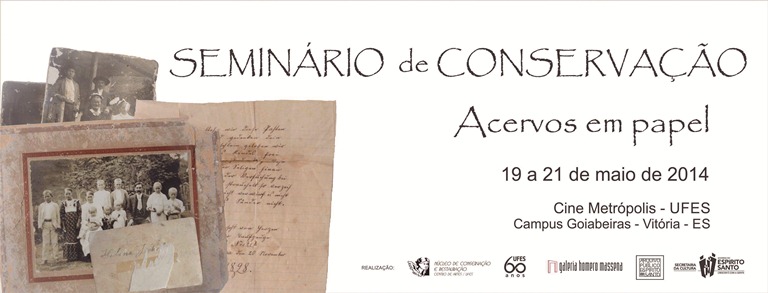 O Seminário de Conservação: Acervos em Papel está sendo realizado pela Secretaria de Estado da Cultura do Espírito Santo (Secult-ES) e pelo Núcleo de Conservação e Restauração da Universidade Federal do Espírito Santo (NCR-Ufes), com o apoio do Arquivo Público do Estado do Espírito Santo (APEES), da Superintendência de Cultura e Comunicação da UFES (Supecc) e da Galeria de Arte Homero Massena.