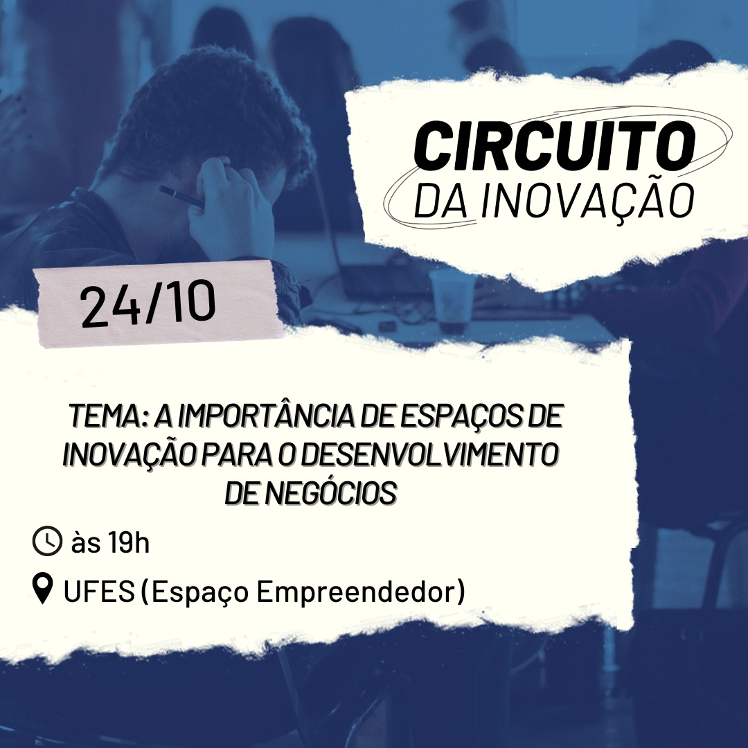A Diretoria de Inovação Tecnológica (DIT) da Pró-Reitoria de Pesquisa e Pós-Graduação (PRPPG) promove na segunda-feira, 24, a partir das 19 horas, um evento para startups com o objetivo de promover a inovação tecnológica. O Circuito da Inovação vai acontecer no Espaço Empreendedor da Ufes, no campus de Goiabeiras.