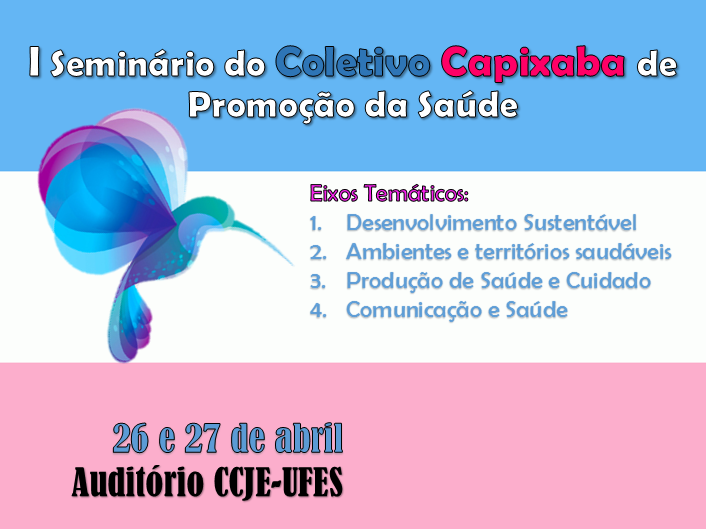 O Coletivo Capixaba de Promoção da Saúde realiza nesta terça e quarta-feira, dias 26 e 27, seu primeiro seminário que ocorrerá no Auditório Manoel Vereza, no campus de Goiabeiras, das 9 às 17 horas.