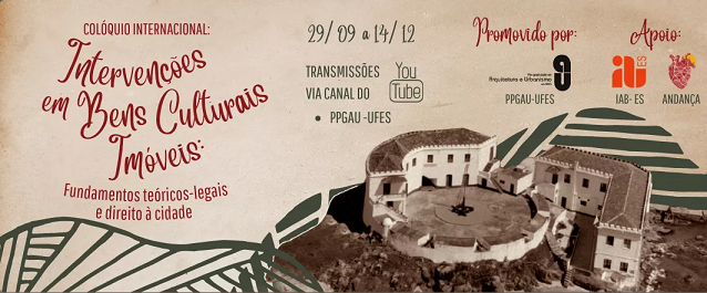 Na próxima quinta-feira, 29, terá início o colóquio internacional Intervenções em bens culturais imóveis: fundamentos teórico-legais e direito à cidade, promovido pelo Programa de Pós-Graduação em Arquitetura e Urbanismo (PPGAU/Ufes). O evento contará com 20 palestras e duas conferências, nas quais, até o dia 14 de dezembro, será discutida a importância das instituições públicas e privadas na proteção e na preservação dos bens culturais. A transmissão será ao vivo pelo canal do PPGAU no Youtube, iniciando-se sempre às 19h30.