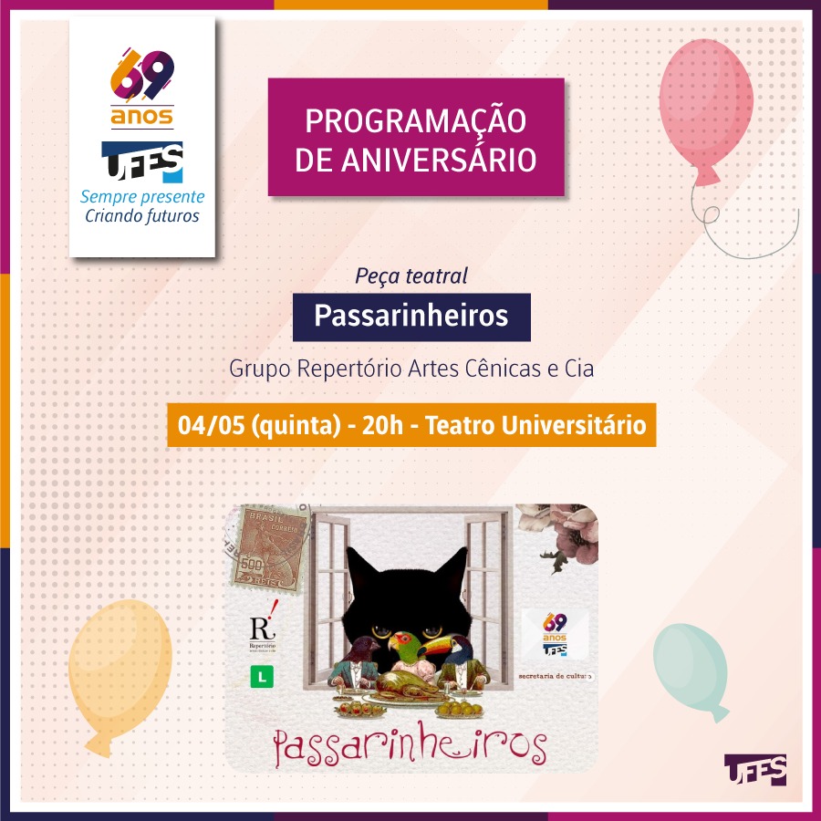 A peça faz parte da programação de aniversário dos 69 anos da Ufes, que ao longo do mês de maio realiza uma série de atividades culturais e formativas nos quatro campi da Universidade.