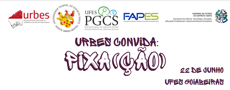 Pixa(ção) é realizado pelo grupo de pesquisa Urbes: Núcleo capixaba de estudos da experiência humana em meio urbano, vinculado ao Departamento de Ciências Sociais e ao Programa de Pós-Graduação em Ciências Sociais (PGCS) da Ufes. O evento tem apoio da Fundação de Amparo à Pesquisa e Inovação do Espírito Santo (Fapes) e do Governo do Estado do Espírito Santo.