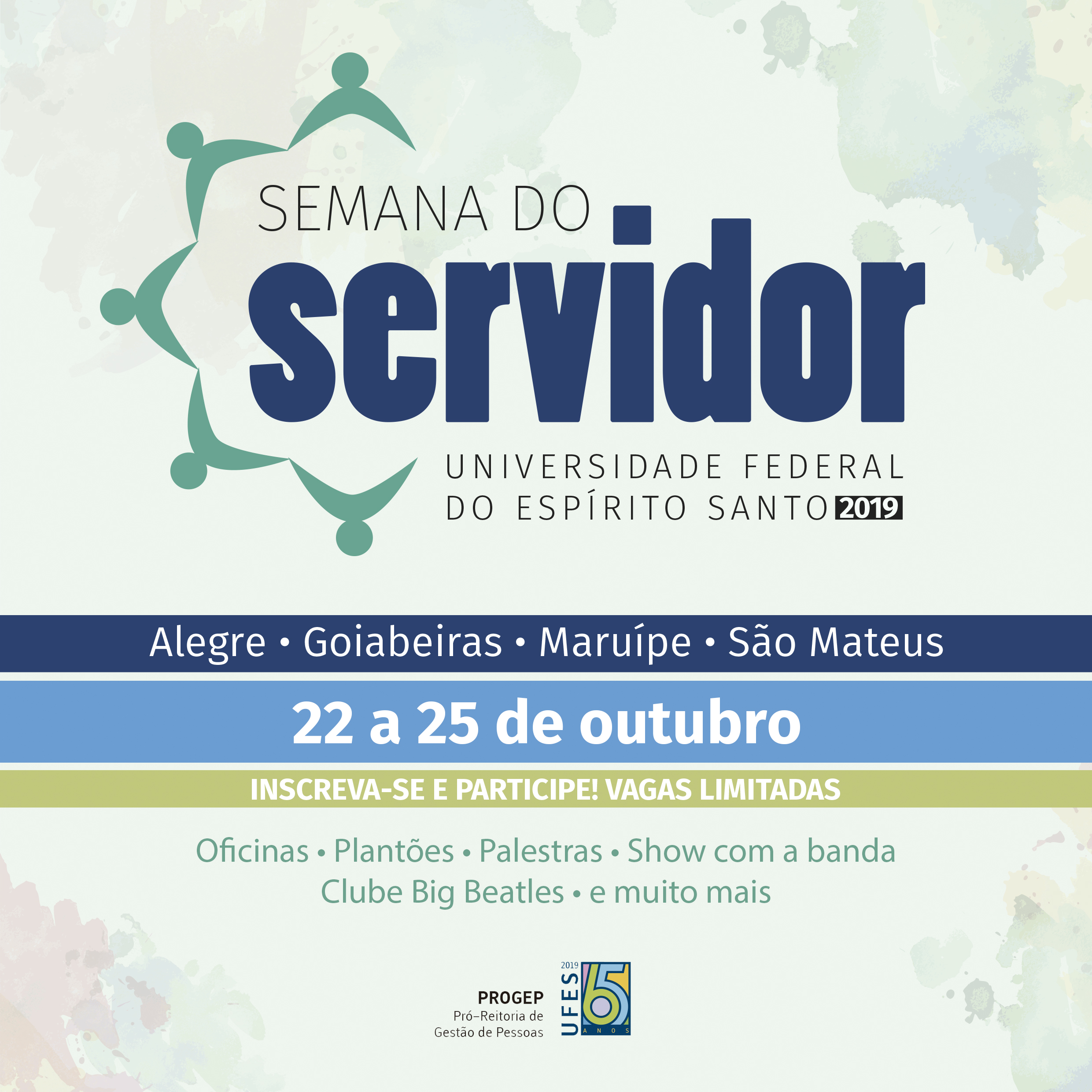 A Semana do Servidor é organizada pela Pró-Reitoria de Gestão de Pessoas, com a participação de uma comissão formada por servidores e representantes da comunidade universitária. Outras informações podem ser obtidas pelo e-mail semanadoservidor@ufes.br.