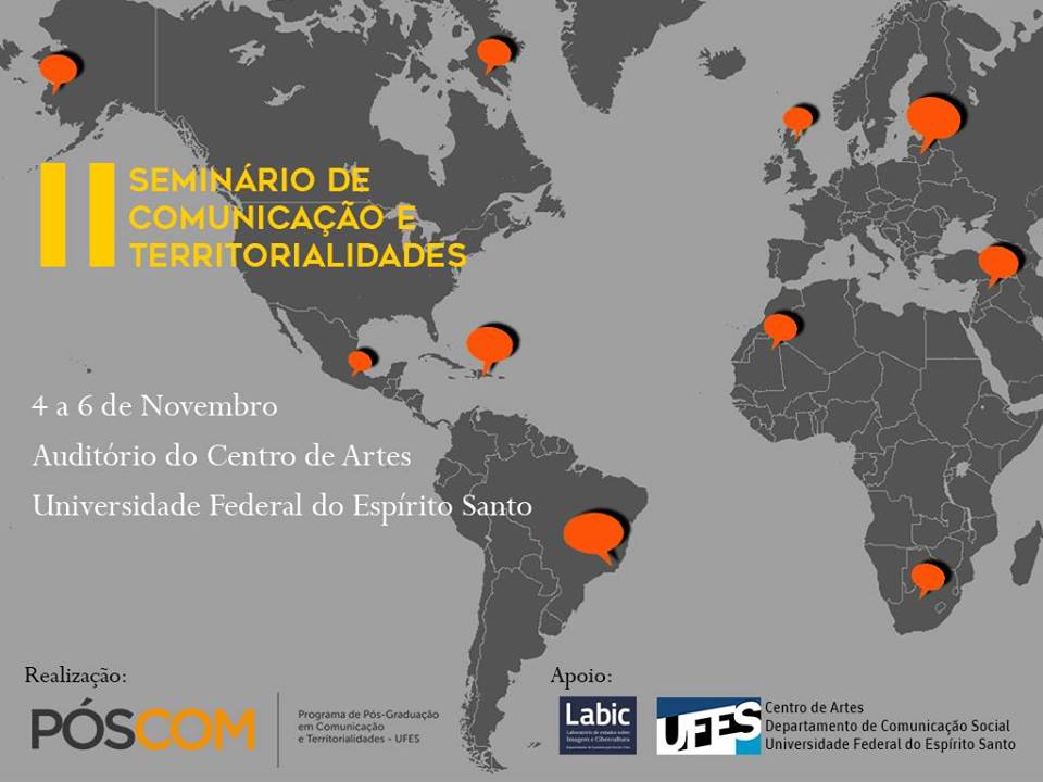 O Programa de Pós-Graduação em Comunicação e Territorialidades (Pós-Com/Ufes) promove a partir desta quarta-feira, dia 4, e até sexta-feira, 6 de novembro, no auditório do Centro de Artes, seu segundo seminário anual. Esta edição contará com as presenças de Rossana Reguill, da Universidade Jesuíta de Guadalajara (México), e Javier Toret, da Universidade Aberta da Catalunha (Espanha).