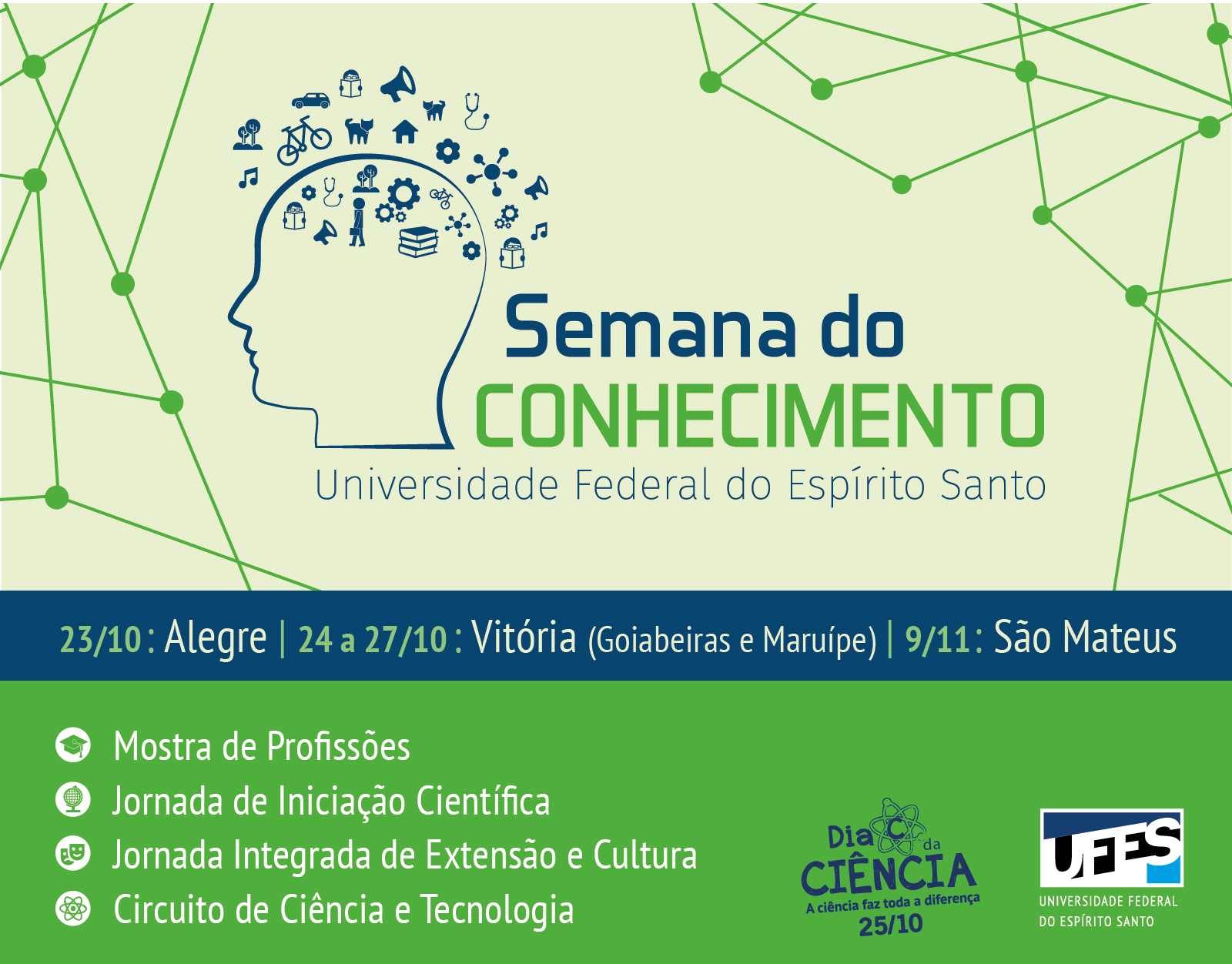 As atividades da Semana do Conhecimento serão realizadas em datas diferentes para cada campus. Em Alegre, a programação está concentrada no dia 23. Já Vitória, no dia 25 no campus de Maruípe e no período de 24 a 27 no campus de Goiabeiras. No campus de São Mateus, as atividades no serão realizadas no dia 9 de novembro.
