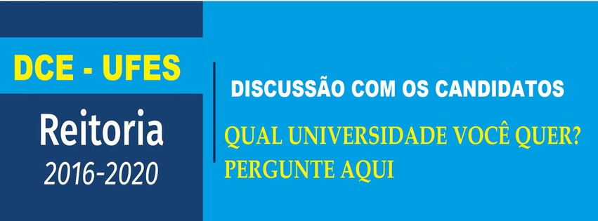 O Diretório Central de Estudantes da Ufes (DCE) realiza nesta sexta-feira, 18, uma discussão com os candidatos à Reitoria para o quadriênio 2016-2020.