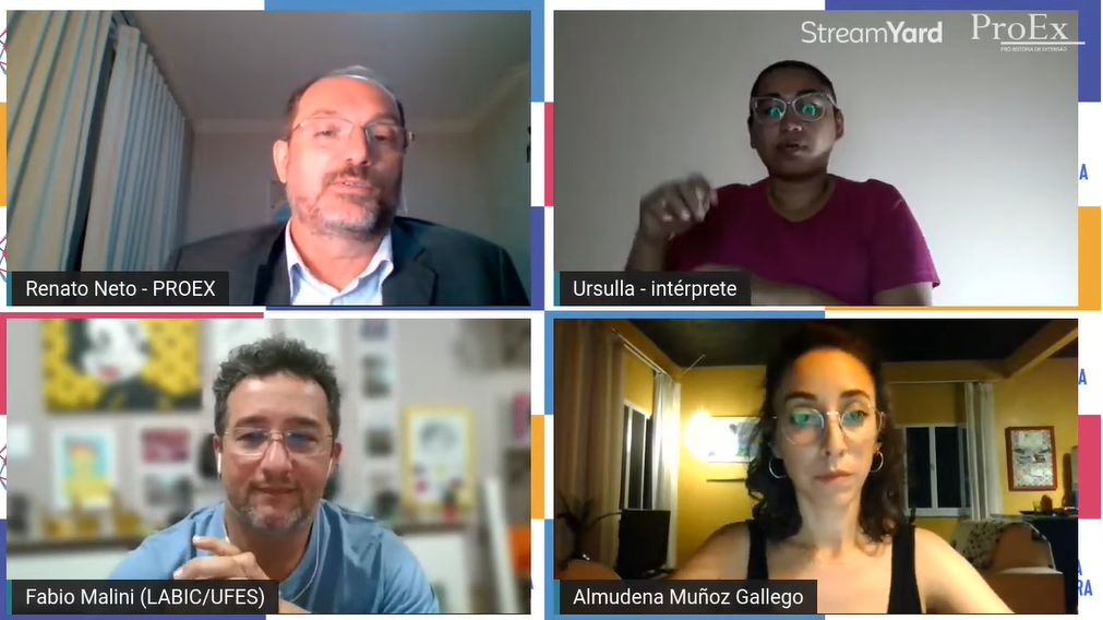 Intitulada O Papel da Divulgação Científica e a Construção da Democracia no Combate à Desinformação e mediada pelo pró-reitor de Extensão, Renato Neto, a mesa teve como convidados os professores e pesquisadores Almudena Muñoz Gallego (Universidad Complutense de Madrid) e Fabio Malini (Ufes). Os especialistas discorreram sobre os temas por cerca de 30 minutos, e em seguida responderam perguntas do público que acompanhava o debate.