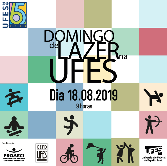 A Ufes realiza no domingo, 18, a primeira edição do Domingo de Lazer na Ufes do segundo semestre letivo de 2019. Com o objetivo de promover a integração entre estudantes veteranos, calouros, professores e servidores técnicos, a Pró-Reitoria de Assuntos Estudantis e Cidadania (Proaeci) realizará, como parte da programação, um Torneio Integração, com partidas de vôlei, futsal e handebol. Os jogos serão realizados a partir das 9 horas na área do Centro de Educação Física e Desportos (CEFD), no campus de Goiabeiras.