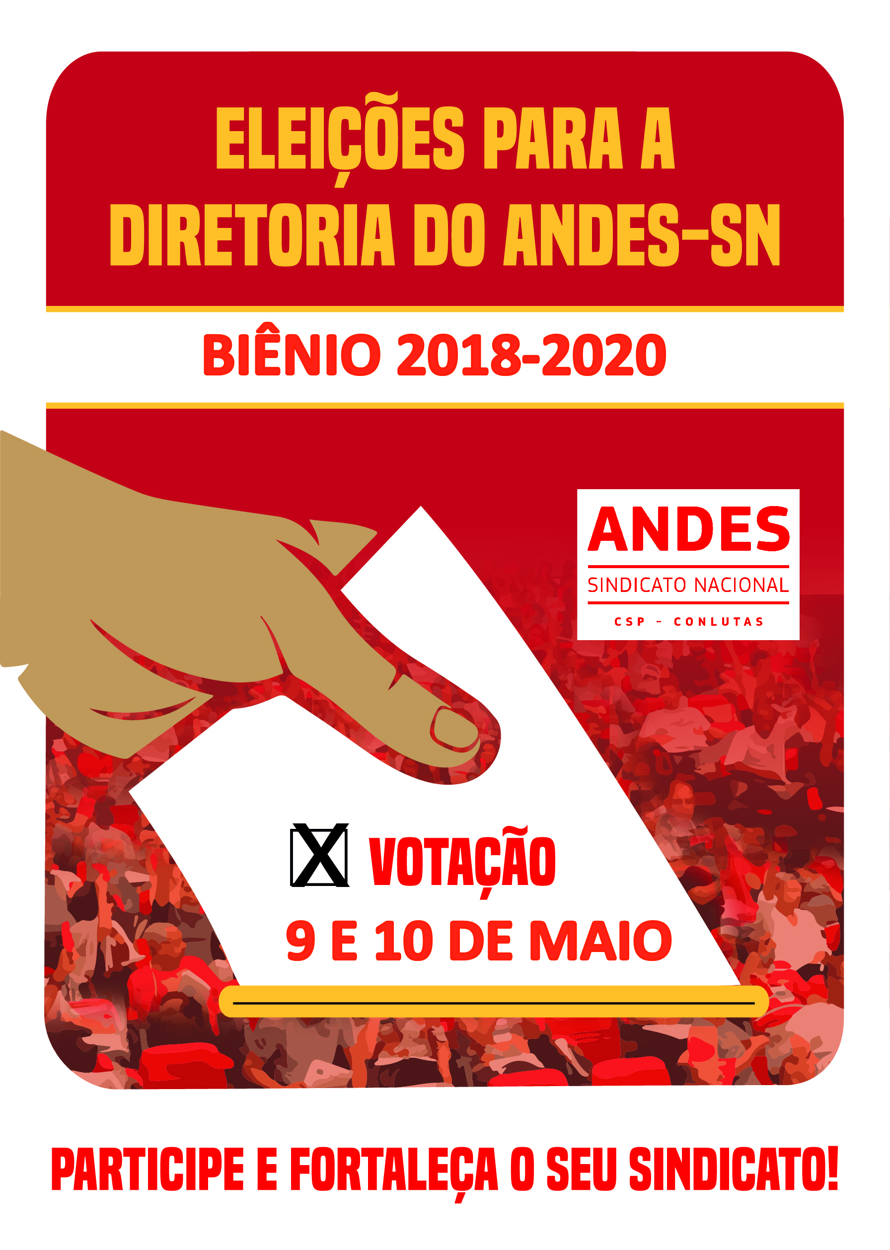 Nesta quarta e quinta-feira, dias 9 e 10, ocorre em todo o país de forma direta e secreta a votação para escolha da nova diretoria do Sindicato Nacional dos Docentes das Instituições de Ensino Superior (Andes- SN) para o biênio 2018 - 2020.