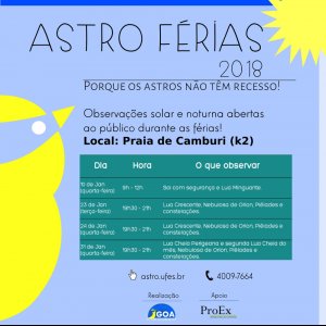 Mais informações estão disponíveis em http://astro.ufes.br/astro-ferias2018 .
