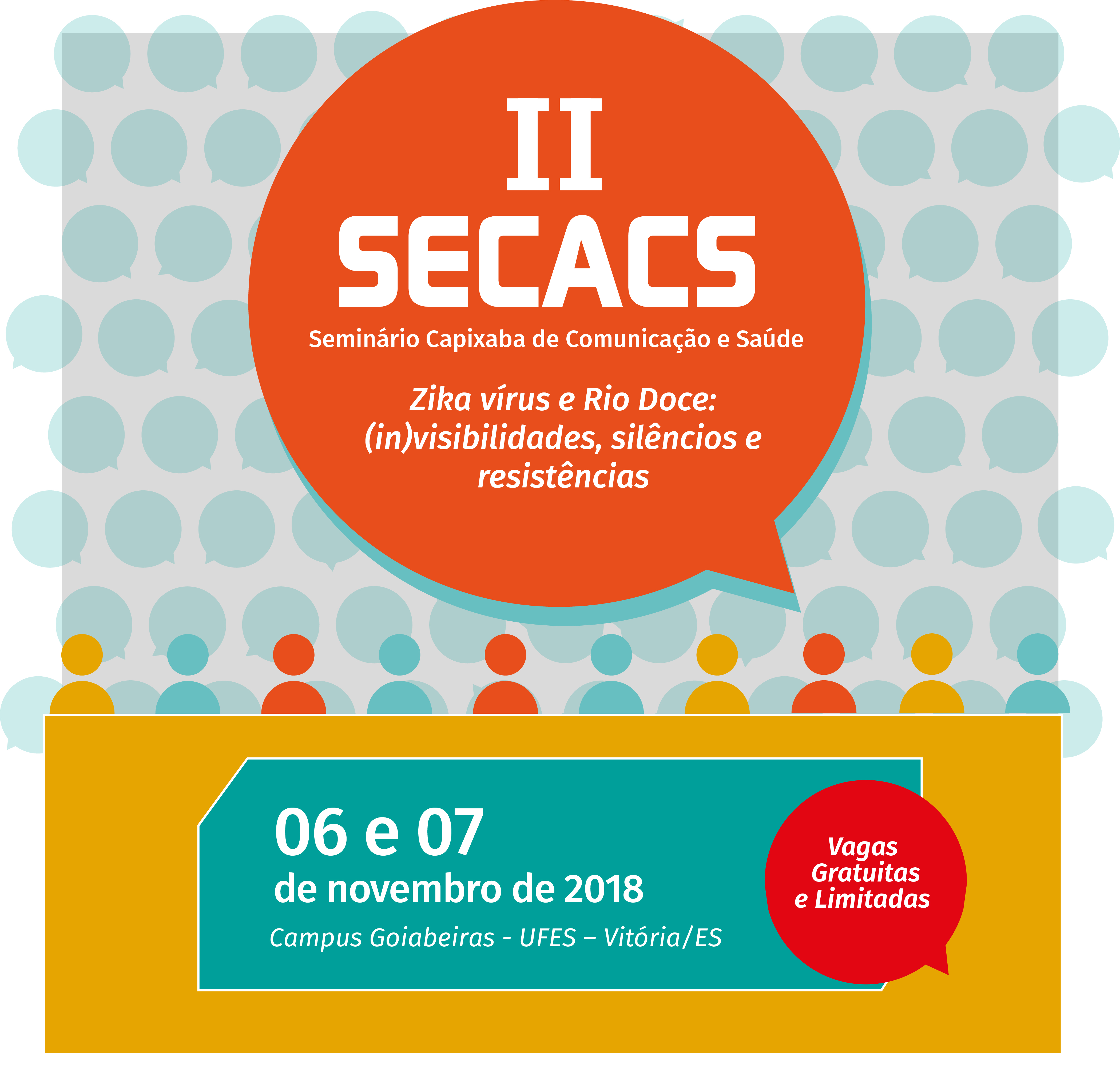 O Programa de Pós-Graduação em Saúde Coletiva (PPGSC) da Ufes realiza nos dias 6 e 7 de novembro, no campus de Goiabeiras, o II Seminário Capixaba de Comunicação e Saúde (II Secacs). Com o tema “Zika vírus e Rio Doce: (IN)visibilidades, silêncios e resistências”, o evento vai abordar a epidemia de Zika e o desastre socioambiental do Rio Doce, seus impactos sociais, invisibilidades, silêncios e resistências.