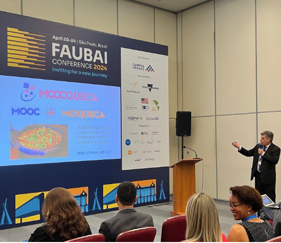 Ele também apresentou como foi construída e implementada a plataforma Moocqueca, que promove a internacionalização da extensão por meio da plataforma massiva e aberta de cursos on-line, uma iniciativa conjunta da Pró-Reitoria de Extensão (Proex), da Superintendência de Educação à Distância (Sead) e da SRI.