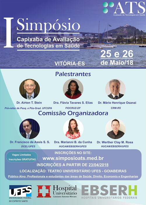 Estão abertas as inscrições para o I Simpósio Capixaba de Avaliação de Tecnologias em Saúde. O evento tem como objetivo informar aos profissionais de saúde do Espírito Santo sobre a importância da realização de estudos com qualidade metodológica.
