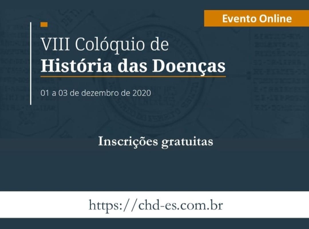 Neste ano, o Colóquio de História das Doenças chega à sua oitava edição e, devido à pandemia da COVID-19, será realizado em formato on-line, com transmissões pelo canal do evento no YouTube. Segundo os organizadores, desde a sua criação, o Colóquio vem projetando o Espírito Santo como um centro de difusão de conhecimento sobre o tema, abrindo um espaço para o diálogo que percorre desde as dinâmicas de surgimento das doenças até as complexas relações entre os sistemas sociais e naturais ao longo do tempo e nos diferentes recortes históricos.
