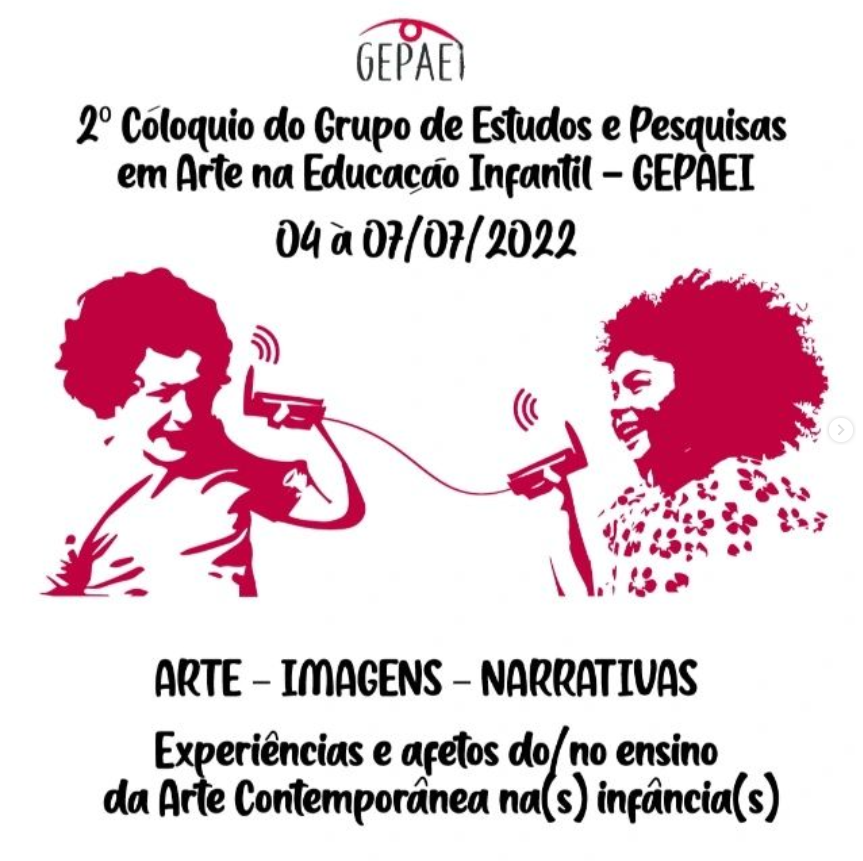 O Colóquio ocorrerá de 4 a 7 de julho, com início às 19 horas e transmissão pelo canal do Gepaei no Youtube. Podem participar professores da educação básica (principalmente educação infantil e séries iniciais do ensino fundamental), estudantes de Artes Visuais, Pedagogia, Educação Física e demais interessados pelo ensino da Arte e infâncias. Os participantes receberão certificado de 8 horas.