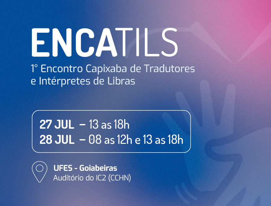 Estão abertas as inscrições para o I Encontro Capixaba de Tradutores e Intérpretes de Libras (Encatils), que será realizado nos dias 27 e 28 de julho. O evento, realizado por meio de uma parceria entre a Ufes e o Instituto Federal do Espírito Santo (Ifes), tem o objetivo de promover a formação continuada dos profissionais intérpretes da Língua Brasileira de Sinais (Libras) do estado do Espírito Santo.