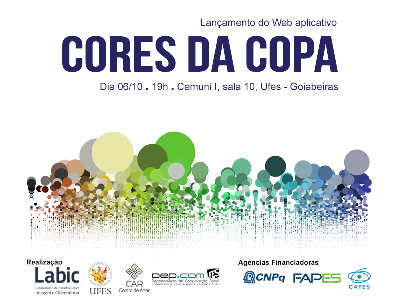 O Laboratório de Estudos sobre Imagem e Cibercultura (Labic) lança nesta segunda-feira, dia 6, o web aplicativo Cores da Copa. O lançamento será às 19 horas, no Labic, localizado na sala 10 do Cemuni I, campus de Goiabeiras. A entrada é gratuita.
