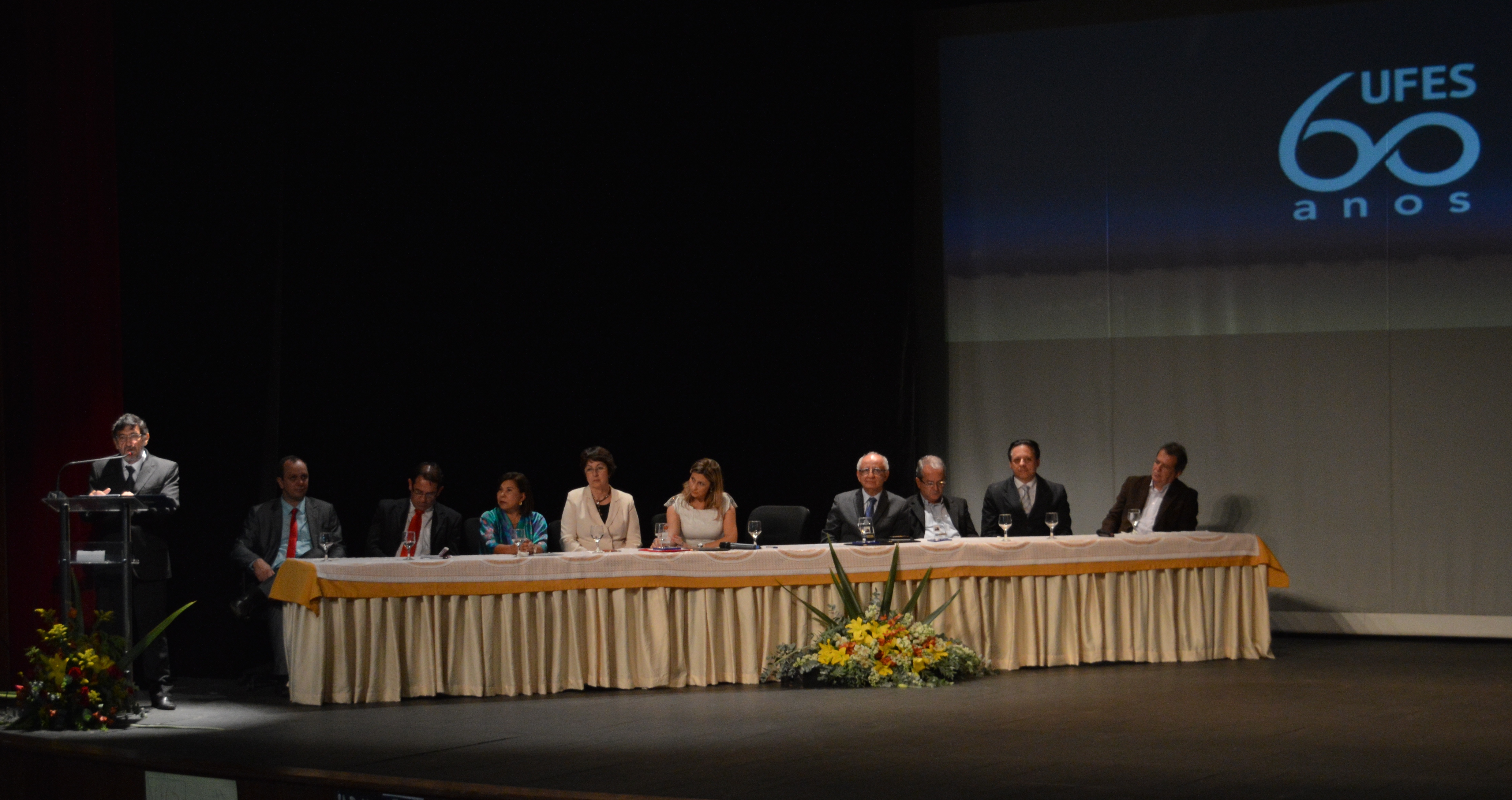 Autoridades, professores, servidores técnico-administrativos e estudantes participaram na noite desta segunda-feira, 5, da sessão solene realizada no Teatro Universitário em homenagem aos 60 anos da Ufes. A data foi marcada com o lançamento de um livro e de um vídeo sobre a história da Universidade, além de um selo filatélico.