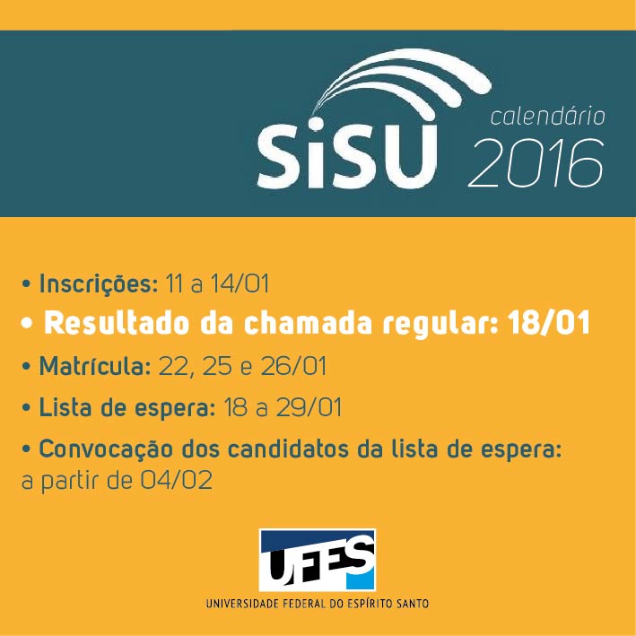 Nesta primeira edição do Sisu 2016 a Ufes ofertou 450 vagas em nove cursos, todos no Centro Universitário Norte do Espírito Santo (Ceunes), em São Mateus. São 50 vagas para cada um dos seguintes cursos: Agronomia, Ciências Biológicas, Enfermagem, Engenharia da Computação, Engenharia de Petróleo, Engenharia de Produção, Farmácia, Matemática Industrial e Pedagogia.
