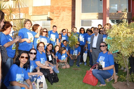 Os participantes do VII Encontro Nacional de Cerimonial Universitário, que acontece na Ufes desde a última terça-feira, 3, fizeram uma homenagem à instituição na tarde desta quinta-feira, 5. Em uma ação simbólica, e lembrando a celebração do Dia Mundial do Meio Ambiente, os participantes do encontro plantaram a muda de uma árvore no jardim em frente ao prédio da Reitoria, em agradecimento pelo acolhimento que receberam da Universidade.
