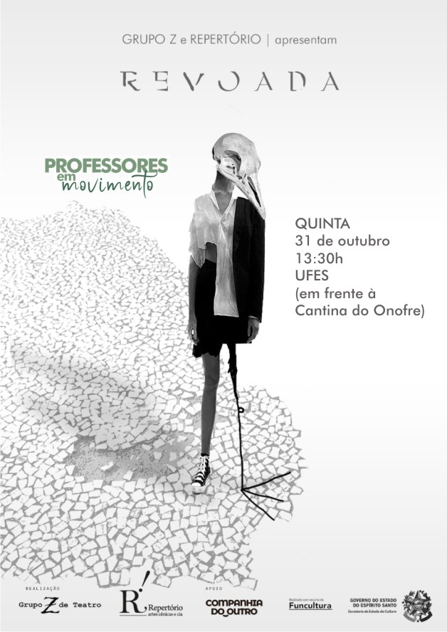 Promovida na Ufes pelo coletivo Professores em Movimento (formado por docentes da Universidade), Revoada interpreta modos contemporâneos de existência, fazendo o público pensar em conflitos sociais recorrentes nos espaços urbanos das grandes cidades, como o desamparo, a exclusão e a intolerância.