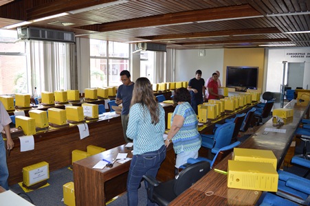 A Comissão Coordenadora da Pesquisa (CCP) para a Reitoria 2016-2020 iniciou na manhã desta segunda-feira, 21, o trabalho de envio das urnas e cédulas para as 83 seções onde a comunidade universitária poderá votar nesta terça-feira, 22. Além dos quatro campi (Goiabeiras, Maruípe, Alegre e São Mateus) e suas unidades, como Jerônimo Monteiro, Rive e Aracruz, também haverá urnas nos polos de ensino a distância.