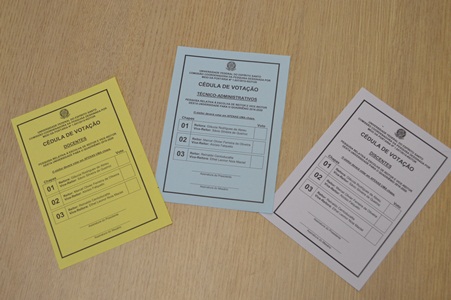 - As cédulas têm cores diferentes; amarela para docentes, azul para servidores técnico-administrativos e rosa para estudantes.