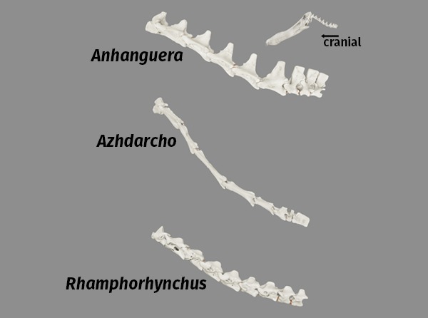 Os pesquisadores da Ufes analisaram fósseis muito bem preservados de três pterossauros predadores, chamados Anhanguera, Azhdarcho e Rhamphorhynchus, estudando como as suas vértebras se encaixavam, e fizeram a reconstituição de como eram suas articulações enquanto vivos. Ao comparar essas características com as de pescoços de aves e jacarés atuais, eles descobriram que as articulações dos pterossauros possuíam finas camadas de cartilagens, e não discos, como são presentes em mamíferos como os seres humanos. Além disso, constataram que esses pterossauros possuíam o pescoço levemente sinuoso, embora bem menos do que o de aves como garças.