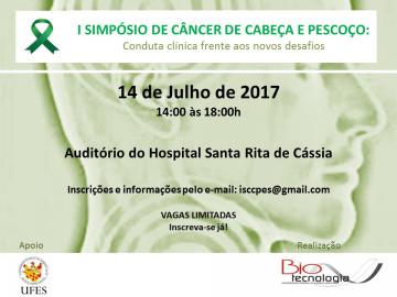 O Programa de Pós-Graduação em Biotecnologia da Ufes, com apoio da Secretaria de Relações Internacionais (SRI) e do Hospital Santa Rita de Cássia, realiza no dia 14 de julho, das 14 às 18h10, o I Simpósio de Câncer de Cabeça e Pescoço.