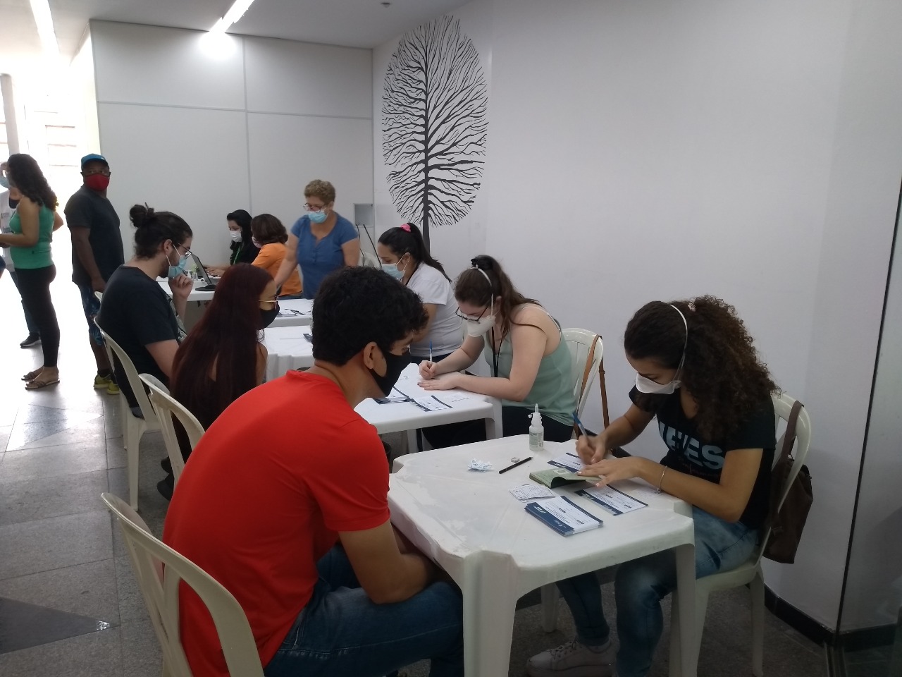 A vacinação é feita com o apoio do curso de enfermagem da Ufes. São cerca de 100 estudantes que auxiliam no atendimento ao público não só em Goiabeiras, mas em outros postos na cidade.