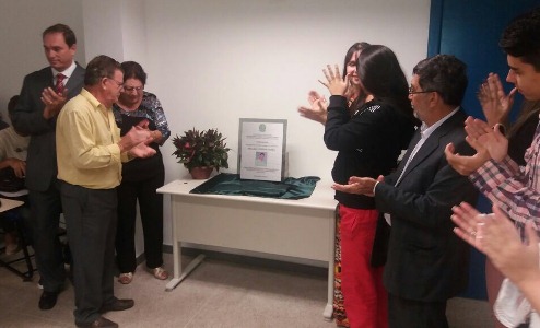 A solenidade de descerramento da placa (que posteriormente será afixada na entrada do prédio) contou com a presença do reitor Reinaldo Centoducatte, do diretor do Centro, Renato Rodrigues Neto, e dos pais, esposa e filhos de Wallace, além de servidores.