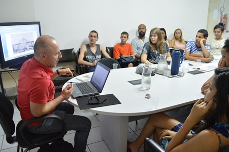 A Pró-Reitoria de Extensão da Ufes recebeu na última quarta-feira, dia 10, 18 estudantes das escolas estaduais de Ensino Médio Irmã Maria Horta e Colégio Estadual do Espírito Santo que assistiram a uma palestra com o professor da Ufes e historiador Júlio Bentivoglio, a respeito da pesquisa, publicada em livro, sobre os índios botocudos no Espírito Santo no século XIX.