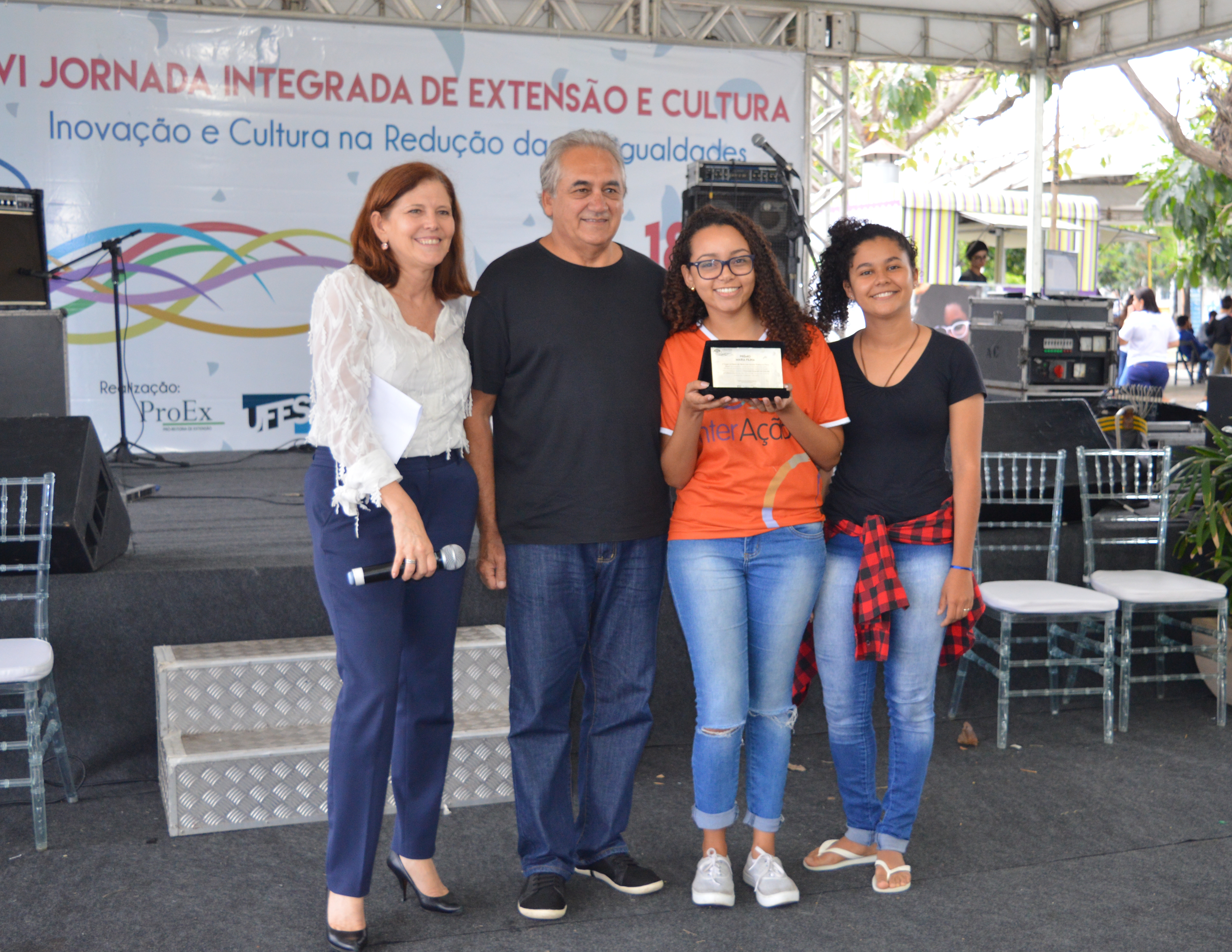 O Programa Brinquedoteca: Aprender brincando, do curso de Educação Física, foi o grande vencedor do Prêmio de Mérito Extensionista Maria Filina, concedido durante a VI Jornada Integrada de Extensão e Cultura. Os ganhadores receberam a premiação das mãos da pró-reitora de Extensão, Angélica Espinosa.