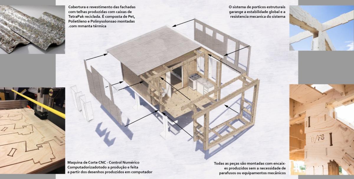 As moradias fabricadas pelo projeto são de peças encaixáveis, não utilizando cimento, parafusos ou equipamentos elétricos nas construções. O revestimento e o telhado têm conforto térmico, pois são feitos de material reciclado a partir de embalagens tetrapak. A nova casa de Manoel contará com dois cômodos, cozinha integrada, banheiro e varanda.