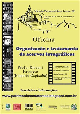 A programação do projeto Educação Patrimonial Santa Teresa continua em andamento e neste sábado, 15, será realizado o curso “Organização e Tratamento de Acervos Fotográficos”, às 8 horas na Casa de Cultura de Santa Teresa.