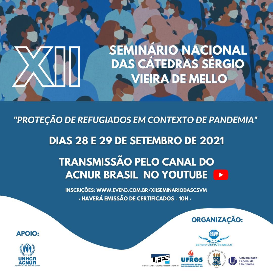 O XII Seminário Nacional das Cátedras Sérgio Vieira de Mello é um evento organizado em conjunto pela Ufes e pelas universidades federais do Rio Grande do Sul (UFRGS), de Santa Maria (UFSM) e de Uberlândia (UFU), com o apoio do ACNUR.