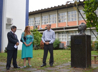 A restauração e reinauguração do busto de José Martí, localizado em frente ao prédio Bernadete Lyra no Centro de Ciências Humanas e Naturais (CCHN), marcou a quarta edição do Dia da Cultura Internacional, que nesta quinta-feira, 26, homenageou Cuba. A solenidade contou com a presença do reitor Reinaldo Centoducatte; da consulesa de Cuba, Ivette Martinez Leyva; e do médico, professor aposentado da Ufes e ex-governador do Espírito Santo, Vitor Buaiz (foto); entre outras autoridades universitárias.