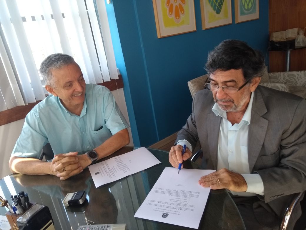 O reitor Reinaldo Centoducatte (na foto, ao lado do pró-reitor de Assuntos Estudantis e Cidadania, Gelson Junquilho) assinou nesta quinta-feira, 15, a portaria de concessão de Auxílio Material Didático de Alto Custo, destinado aos estudantes do curso de Odontologia da Ufes.