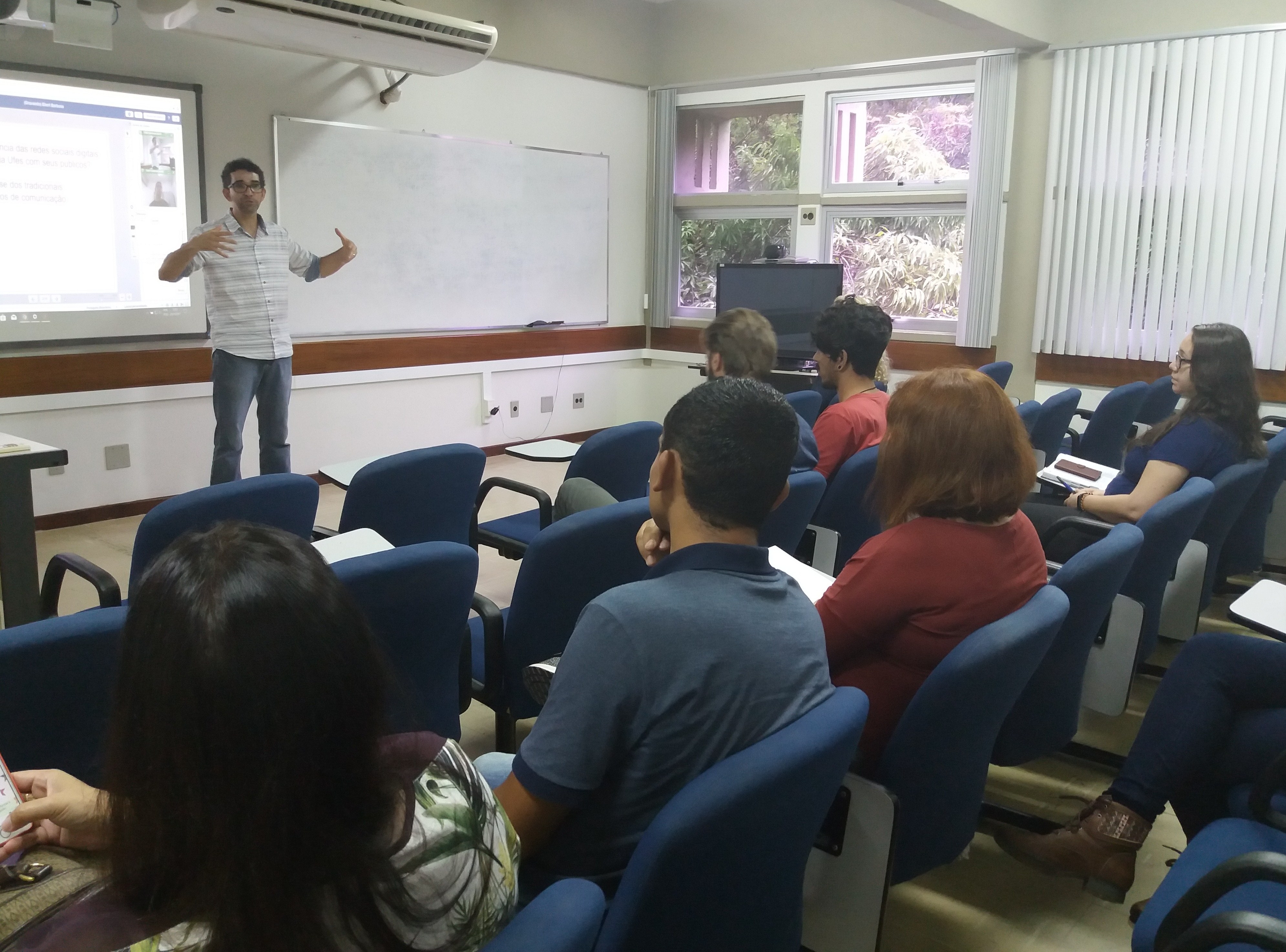 O professor do Departamento de Comunicação Social da Ufes Fabio Goveia (foto) também participou da oficina. Em sua fala, ele refletiu sobre o espaço comunicacional propiciado pelas redes sociais e falou sobre a crise dos meios de comunicação tradicionais, provocada, em parte, pela articulação das redes sociais. Na sequência, a coordenadora do projeto Ana Paula Vieira apresentou algumas práticas já adotadas no gerenciamento das redes sociais institucionais da Ufes e sugeriu a criação de materiais e o desenvolvimento de ações conjuntas, visando a integração e a melhoria do uso desses canais como ferramentas de comunicação estratégica para a instituição.